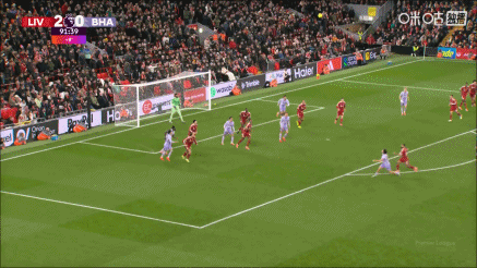 12月14日讯 英超第13轮利物浦vs布莱顿第92分钟,基耶萨单刀不射选择传球,萨拉赫门前绝佳机会打高,错失本场达成传射的机会!